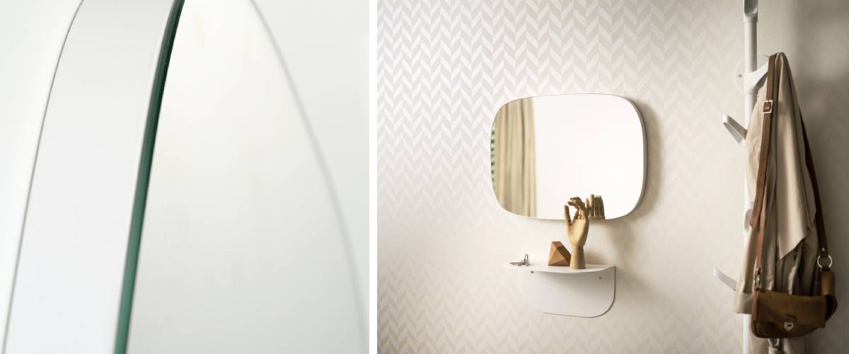 TheSLIDE S design mirror will appeal to all fans of simplistic style and simple solutions. The sturdy mirror has distinctively rounded corners. From the side, its generous thickness stands out. An interesting feature is that the mirror surface is also extended on the sides of the mirror, so that it does not interfere with the interior style with an incongruous, distinctive frame. For this reason too, the SLIDE S mirror is a suitable universal accessory for both modern and classic spaces. Delight yourself every day with a look that suits you!