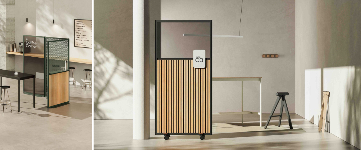 TheATLAS design screen is a quick and practical solution to divide a larger open space. You can instantly turn your interior into individual workplaces, give more privacy to couples at tables in restaurants or cafés or clearly define specific zones. The apron with its painted metal construction in a selected colour is instantly mobile thanks to its base with castors and can be easily moved from place to place at any time. Your space will instantly become more variable! The appearance of the screen can be further modified by the choice of design in parts and also by the style of the filling - wooden slats, acoustic panels, writing boards, polycarbonate or perforated sheet metal are available. If you don't need a base with castors, it can be chosen in fixed form, with feet or combined. But that's not all! In the configurator, you can add handy accessories to the screen, such as a hanging planter, shelves or hooks for clothes or bags. Fine-tune your open space to perfection!