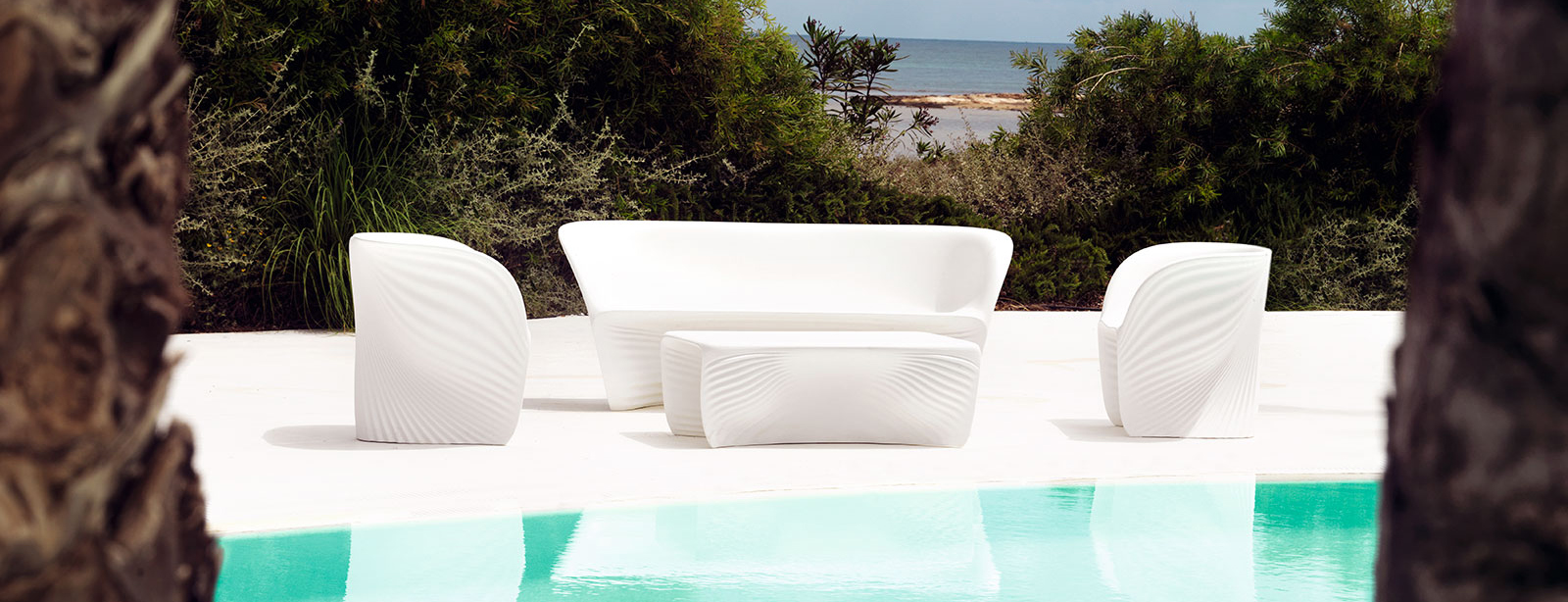 Designer Ross Lovegrove is forging a whole new path through the world of design. In his collection, he shapes a dialogue between time, shape and space. The timeless form stems from the inspiration of the organic design of the Sagrada Familia, along with the combination of Vondom' s expertise in advanced rotational modelling technologies and ongoing research into the transfer of digital technologies into contemporary design. This collection seeks to push boundaries in all directions. The entire collection is made of 100% recyclable polyethylene. Lovegrove finds this material as a form of preserving movement in inanimate objects.
