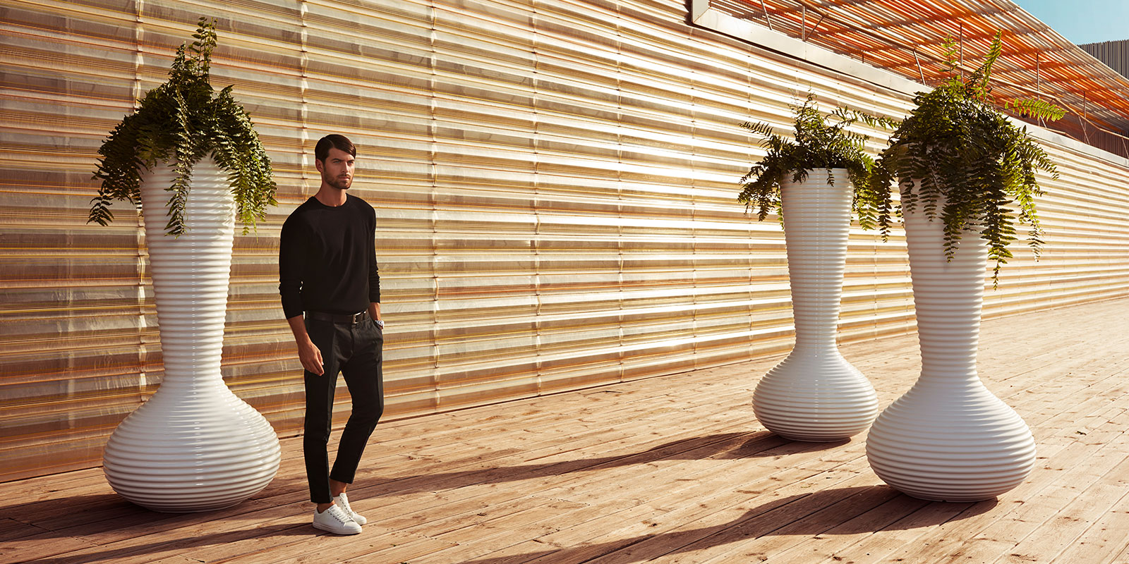 The planter from the BLOOM collection captures the most beautiful phase of plants. Don't expect a classic pot size, this majestic piece symbolising bloom reaches a height of 187 cm. You can also get it with a clever self-watering system that includes an indicator to alert you when the plant needs watering. There is also a version with LED lighting, as is customary with the VONDOM brand. There is also a choice of matt or painted finish.