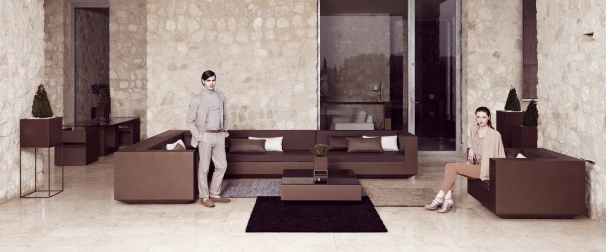 The extensive VELA outdoor furniture collection offers quality, comfort and design similar to indoor furniture. Models and decorations from this collection can be freely combined and integrated into any environment. The minimalist models are equipped with a base that makes some objects appear to float above the ground.