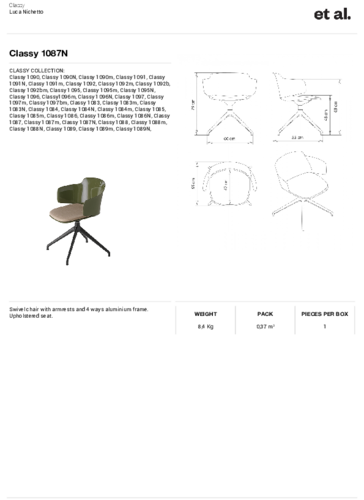 Designová otočná CLASSY 1087N jednoznačně splňuje vše, co si lze od moderního a stylového posezení přát. Tvarovanému korpusu z polypropylenu dominují elegantní linie, přesto jeho celkovému designu překvapivě nechybí špetka moderní extravagance. Skořepinu ve zvolené barvě doplňuje otočná podnož na stabilním čtyřramenném kříži z lakovaného nebo leštěného hliníku, která ještě více nechává vyniknout atraktivnímu vzhledu židle. Její provedení si můžete vybrat z mnoha krásných barevných odstínů. Stejně tak je tomu u čalounění sedáku, stačí si jen vybrat vhodný materiál z bohatého katalogu – neváhejte, hrajte si a vyberte si barevnou kombinaci, která doladí atmosféru vašeho interiéru. Možností je i dodání vašeho vlastního potahu. Tato varianta navíc nabízí praktické područky. Židle CLASSY je díky své mobilitě skvělou volbou pro kanceláře, zasedací místnosti nebo například home office.
