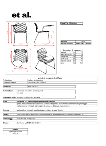 Hlavní parketou italské nábytkářské značky Et al. je zejména posezení do veřejných prostor. Jejich produkty v sobě snoubí moderní, vizuálně atraktivní design a vsází výhradně na materiály prémiové kvality. Kolekce židlí UNI je těmto myšlenkám zcela věrná a jistě si vás získá svou originalitou a komfortem. Mezi židlemi této série najdete i díky škále barvených provedení ty pravé pro svou stylovou kavárnu, restauraci i firmu.