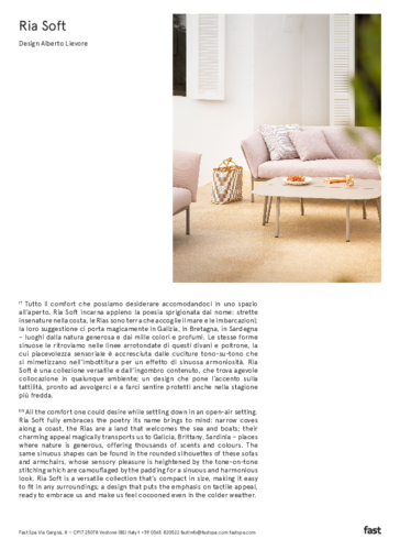 Lehátko RIA SOFT od designéra Alberta Lievore bylo navrženo pro komfortní a elegantní relaxi pod širým nebem - na zahradě, terase verandě či balkonu. Díky zvýšené odolnosti materiálů se nemusíte bát umístit ho ani k bazénu. Svým tvarem připomíná lotosový květ. Jednoduchá kostra na vyšší štíhlé podnoži je, jake je u značky FAST typické, zhotovena z lakovaného hliníku v odstínu dle vaší volby. Sedák a opěrák jsou čalouněné v materiálu a barevném provedení, které si taktéž zvolíte z katalogu. Díky zaoblenému charakteru opěráku, který vás obklopí ze všech stran, jej můžete po koncových stranách využít i jako měkké područky. Nadčasově krásný nábytek nemusí být pouhou výsadou interiéru! K lehátku doporučujeme zakoupit také křeslo nebo sedačku ze stejné kolekce.