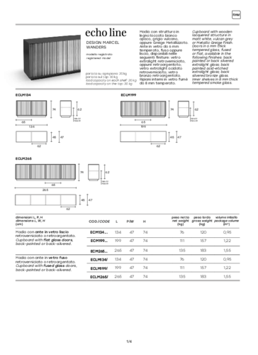 Hledáte originální skříňku pro svůj obývák, ložnici nebo třeba kancelář? ECHO LINE v několika velikostech splní jak estetickou, tak praktickou funkci. Designér Marcel Wanders ji navrhl v několika provedeních, tak, aby zapadla do různě laděných interiérů. Dřevěný lakovaný korpus je k dispozici v bílé, šedé nebo béžové barvě. Dvířka z tvrzeného skla o tloušťce 6 mm nabízíme ve různých úpravách. Vnitřní police je z 8 mm silného tvrzeného kouřového skla. V případě jakýchkoli dotazů nás neváhejte kontaktovat. ECHO LINE můžete zakoupit také jako vitrínu.