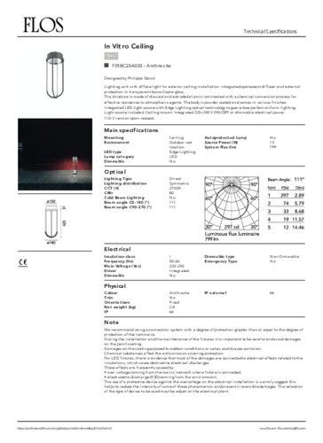 Minimalistické stropní svítidlo IN VITRO navržené designérem Philippem Starckem osvětlí všechny vnitřní nebo kryté venkovní prostory. Tělo lampy je vyrobeno z tlakově litého a lisovaného hliníku ošetřeného chemickou konverzí pro ochranu proti povětrnostním vlivům. Prášková barva se nabízí v několika atraktivních verzích. Opalescenční difuzor je integrovaný v hlavici a vnější ochranné sklo je vyrobeno z průhledného borosilikátu. Zabudovaný světelný zdroj LED s technologií Edge Lighting zaručuje dokonale rovnoměrné osvětlení. V těle se nachází ovladač stmívače s optickým dotykovým senzorem. Svítidlo je vybaveno krytím IP66 vhodným pro použití v exteriéru. Nabízíme také závěsné nebo nástěnné svítidlo vhodné do krytých venkovních prostor. V případě jakýchkoli dotazů nás neváhejte kontaktovat.