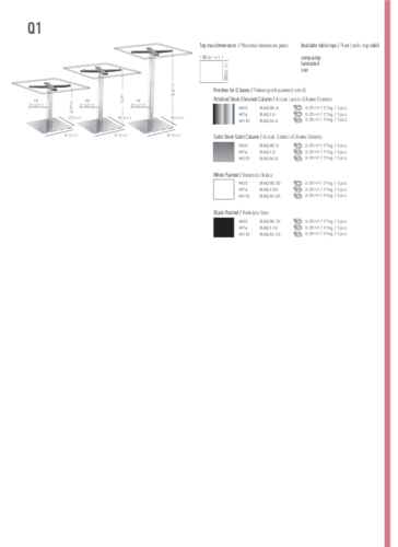 Hledáte nový stůl do baru, restaurace nebo do jídelny? Nepodceňte výběr podnože, která musí být bytelná, stabilní a z kvalitních materiálů. Stolová barová podnož Q1 o výšce 1100 mm na čtvercové základně to všechno splňuje. Základnu je možné objednat v chromu, nerezi nebo v laku a její součástí není stolová deska. Tu je třeba doobjednat (informace o rozměrech naleznete v technickém listu). Nevíte si rady, jakou variantu zvolit? Kontaktujte nás a my vám pomůžeme vybrat ten správný kousek.