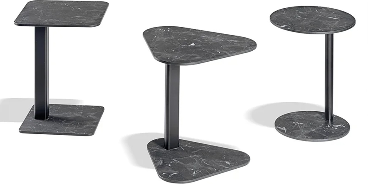 Praktický odkládací stolek KICKI, navržený designérským studiem Forsix, zapadne jak do pracovních, tak domácích nebo pohostinských prostor. Podstavec a stolová deska z kompaktu je k dispozici ve dvou dekorech kamene a spojuje je štíhlá podnož z lakovaného kovu v několika dostupných barvách. Díky těmto odolným materiálům lze stolek použít i v exteriéru. Pro více tvarů si prohlédněte celou kolekci.