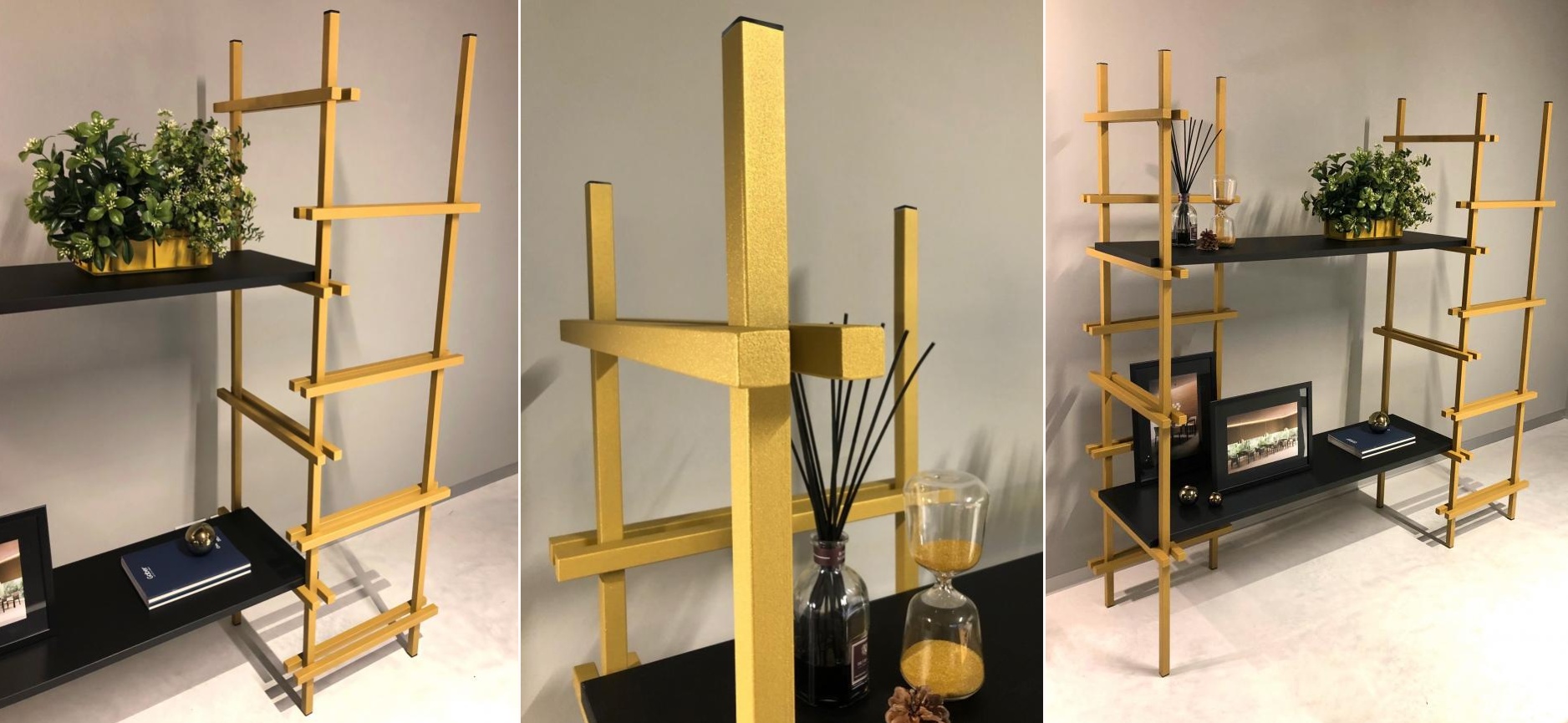 Potřebujete někde vystavit vaše sošky, ocenění nebo prostě hledáte místo pro knihy či vaše oblíbené květiny? Pak je pro vás regál DISPLAY jako dělaný. Konstrukce je vyrobena z lakované oceli v černém, zlatém nebo bílém matném provedení a musí být připevněna ke stěně nebo podlaze. Ke konstrukci je třeba dokoupit laminátové police, na jeden modulární díl můžete použít až 4. Z jednotlivých kusů pak můžete hravě vytvářet sestavy přesně podle vašich představ a podle rozměrů interiérů.