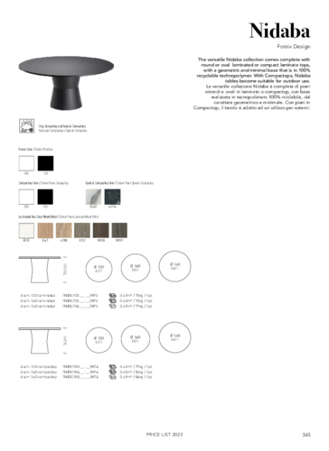 Designový stůl NIDABA splní vaše sny o prostorném robustním stolu v moderním vzhledu, který se stane centrálním prvkem každé místnosti nebo outdooru. Konstrukce stolu s mohutnou centrální podnoží je zhotovena z kovu lakovaného v odstínu dle vaší preference z konfigurátoru. Kruhová stolová deska je taktéž na výběr v různých provedeních, a sice z laminátu nebo vzorovaného či jednobarevného kompaktu. Pro venkovní použití jsou určeny pouze varianty stolu s deskou z kompaktu. Desku nabízíme v několika velikostech skutečně pro každý prostor.