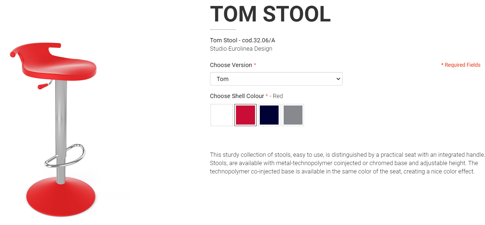 Chybí vašim prostorům špetka originality a důvtipu? Pak je pro vás barová stolička TOM s technopolymerovým sedákem jako dělaná. Kousek v několika barevných provedeních stojí na otočné výškově nastavitelné podnoži z pochromované oceli a se základnou v barvě sedáku. Ať už potřebujete vybavit hotel, bar nebo potřebujete stoličku do vaší jídelny, barová židle TOM je tím pravým ořechovým.