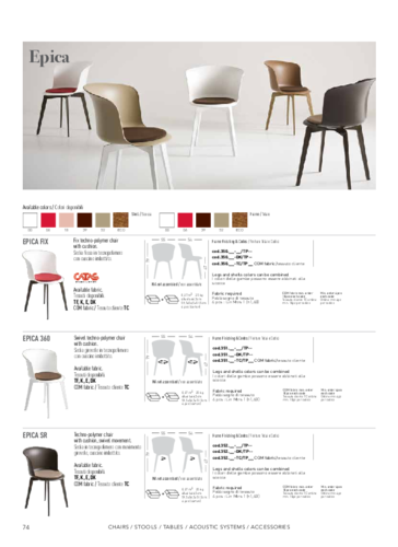 Sedák není otočný, jako například u modelů EPICA 360 nebi EPICA SR. Barvy podnože a sedáku lze různě barevně kombinovat.