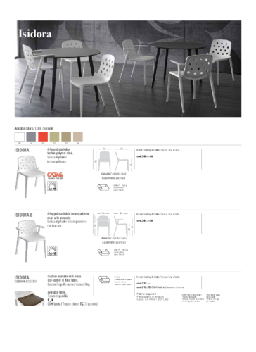 Minimalismus, kvalitní zpracování a neotřelý design, který zaujme. Tím se pyšní židle ISIDORA se sedákem a čtyřnohou podnoží z technopolymeru, která je k dispozici v několika různých barevných provedeních. Kousku to bude slušet v restauracích, barech, jídelnách i na zahradách a terasách.