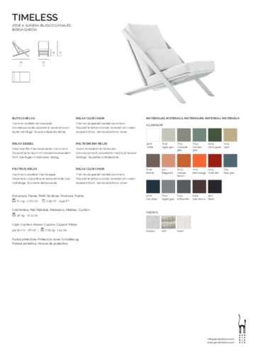 TIMELESS je kolekce venkovního nábytku inspirovaná architektonickým jazykem z počátku 20. století. Řadu lehátek, stolků a sedaček navrhli designéři José A. Gandía-Blasco Canales a Borja García. Kousky jsou vytvořeny tak, aby poskytovaly maximální pohodlí a zároveň vás zaujali svým nadčasovým designem. Jednotlivé kousky se dají mezi sebou hravě kombinovat a vy si tak vytvoříte celky přesně podle vašich představ.