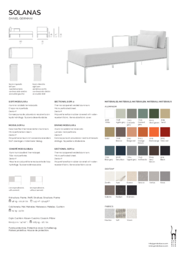 Pohodlnost nade vše. Ze sedačky MODULAR 2 SOLANAS se vám nebude chtít zvedat. Konstrukce sedačky je vyrobena z termo lakovaných svařovaných hliníkových profilů a područka je doplněna materiálem Dekton (můžete si vybrat područku na levé nebo pravé straně). Podsedák a operák z polyuretanové pěny je pokrytý voděodolnou tkaninou, takže si do křesla můžete v klidu sednout i poté, co jste se zrovna vykoupali v bazénu. Ke kousku si můžete dokoupit ochranný potah, díky kterému vám bude kousek dělat společníka po mnoho dlouhých let. V ceně není zahrnut polštářek, pokud si chcete užít co největší pohodlí, doporučujeme vám k pohovce jeden pořídit.