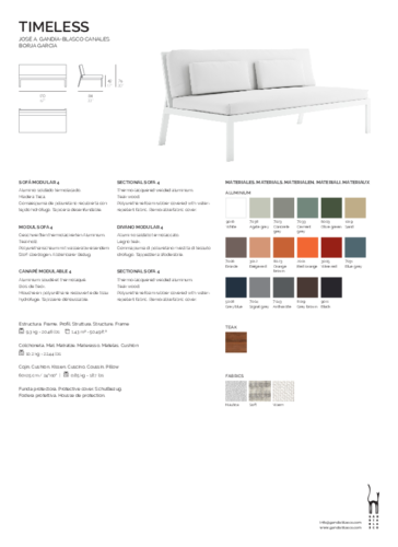 TIMELESS je kolekce venkovního nábytku inspirovaná architektonickým jazykem z počátku 20. století. Řadu lehátek, stolků a sedaček navrhli designéři José A. Gandía-Blasco Canales a Borja García. Kousky jsou vytvořeny tak, aby poskytovaly maximální pohodlí a zároveň vás zaujali svým nadčasovým designem. Jednotlivé kousky se dají mezi sebou hravě kombinovat a vy si tak vytvoříte celky přesně podle vašich představ.
