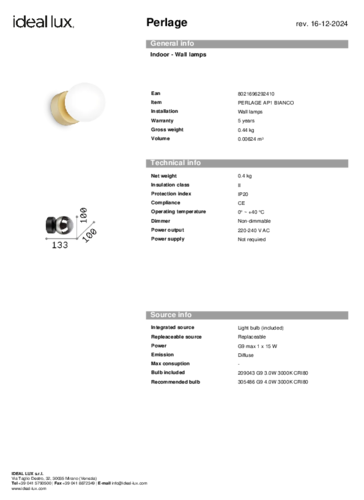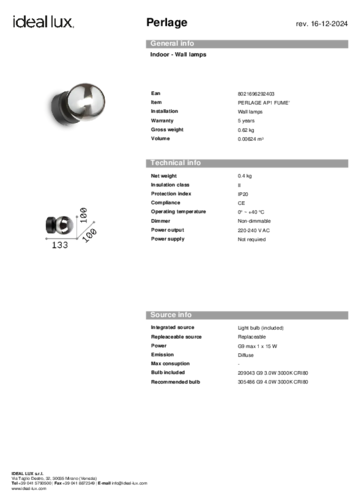 Designové nástěnné svítidlo PERLAGE se stane novým uměleckým dílem ve vašem interiéru. Toto netradiční a odvážné světlo je vyjádřením moderní retro elegance. Celkový vzhled jako by byl inspirován skvostnými perlovými šperky. Kovová konstrukce nese skleněné kulovité stínidlo. Můžete si vybrat bílé či jantarové provedení, které je kombinované s mosazným rámem, nebo kouřové sklo na černém rámu. Využijte prodlouženou pětiletou záruku na nástěnné svítidlo PERLAGE!