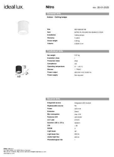 Stropní svítidlo NITRO využijete jako bodové osvětlení chodeb, obývacích pokojů i komerčních prostor. Vyniká minimalistickou siluetou a dokonalou funkčností. Tělo svítidla je vyrobeno z matně lakovaného hliníku v černé nebo bílé barvě, integrovaný LED zdroj s čočkou je krytý plastovou maskou. K dispozici je několik velikostí i dvě teploty žárovky. Pro ještě více možností si prohlédněte celou kolekci. Tak zvolte osvětlení, které je na první pohled nenápadné, na ten druhý vás však okouzlí rafinovanou elegancí!