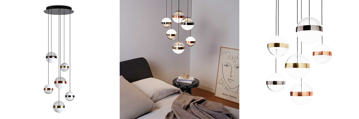 Svítidlo je neopomenutelnou součástí každé místnosti. A závěsné osvětlení GALAXY, jehož tvar byl inspirován vesmírem, perfektně doplní obývák, jídelnu, hotel nebo jakýkoli jiný prostor. Skládá se ze stropní růžice s leskle černou niklovou úpravou, černých PVC kabelů a kulovitých difuzorů z akrylu a centrální vložkou z broušeného kovu v barvě niklu, mosazi a mědi. Integrovaný LED modul lze vyměnit s pomocí odborníka. Na výběr ze 2 velikostí. Tak osvěžte svůj interiér moderním kouskem s příměsí retra!