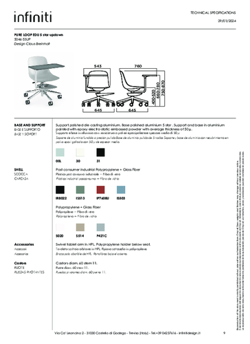 Otočná židle PURE LOOP EDU na kolečkách je lehká a odolná. Svám retro stylem odkazuje na nestárnoucí styl 70. let minulého století. Jednodílná skořepina je vyrobena z polypropylenu vyztuženého skelnými vlákny a zabarvená v 7 neprůhledných pastelových tónech. Židle je vybavena praktickým postranním stolkem a odkládacím prostorem pod sedákem. Kovová část stolku je vždy ve stejné barvě jako podnož. Stolek si můžete zvolit ze dvou základních barev. Hliníková centrální otočná podnož na pětiramenném kříži je vyvedena v leštěném nebo lakovaném hliníku. Židle má mechanismus pro nastavení výšky.