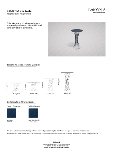 Celokovový barový stolek BOLONIA v sobě snoubí minimalistický a sofistikovaný design, který je inspirován španělským pobřežím. Díky vysoce odolné konstrukci z pozinkované oceli stříkané komaxitem se hodí pro intezivní použivání, a to jak v interiéru, tak exteriéru. Stůl je dostupný v několika barevných provedeních a dodá každému prostoru elegantní punc.