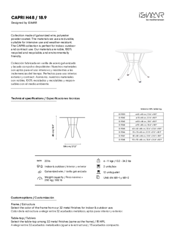 Konferenční stolek CAPRI vyniká svým minimalistickým a působivým designem, díky němuž se přizpůsobí každému prostředí. Jednoduché a efektní linie jsou zvýrazněny kvalitní konstrukcí, která je vyrobena z vysoce odolné galvanizované oceli stříkané komaxitem. Stolek je vhodný jak do interiéru, tak exteriéru. Jeho výška činí 50 cm.