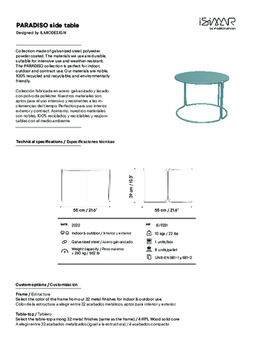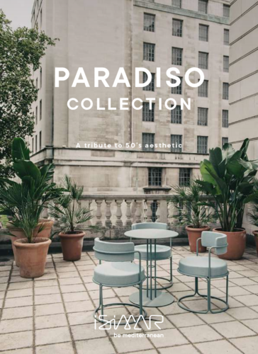 Kolekce PARADISO je inspirována retro stylem, jenž je typický pro kultovní Miami v 50. letech. Naleznete v ní židle, stoličky i stoly, jejichž hlavním posláním je hýčkat si vás v maximálním komfortu. Použité materiály jsou u značky ISIMAR již tradičně vysoce kvalitní, šetrné k životnímu prostředí a 100% recyklované i recyklovatelné.