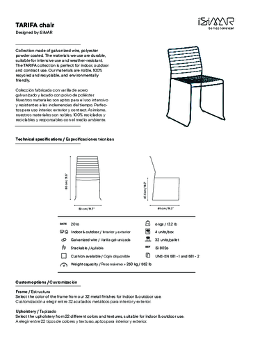 Široký výběr kovového outdoorového i interiérového nábytku iSiMAR je ideální pro pohostinství. Nábytek je inspirován středomořským životním stylem, dává mu svěží nádech plný jasných barev. Současné modely iSiMAR mají všestranné využití, jsou kvalitní a komfortní. Výroba je přitom soustředěna 100% do Španělska. Materiály - ocel a hliník - ze kterých se nábytek vyrábí, lze navíc snadno zrecyklovat.