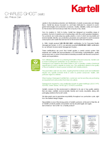 Svým tvarem připomíná stoličky z 19. století. Linie nohou je zaoblená a lehce kolmá, což je charakteristickým symbolem klasických stoliček vysoké úrovně. Charles Ghost je vyráběna z jediného kusu polykarbonátu, díky čemuž je neobyčejně pevná a velice odolná vůči povětrnostním podmínkám. Materiál je 100% recyklovatelný a ekologicky šetrný. Díky lehkosti a stohovatelnosti je také velmi praktická. Nabízíme ji ve třech velikostech, což umožňuje výběr správného kousku - ať už hledáte stoličku pro neformální příležitosti nebo na doplnění vašeho pracovního či barového koutku. Tato stolička, pod níž se podepsal světoznámý designér Phillipe Starck, vnese kouzlo do jakéhokoliv typu prostoru nebo stylu. Rozměr tohoto modelu je 46 x 75 cm (průměr x výška).