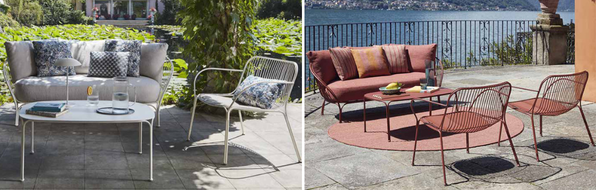 Sedačka HIRAY od designérského dua Ludovica + Roberto Palomba je důkazem, že i venkovní posezení můžete vyladit ve velkém stylu. Moderní a vzdušná minimalistická konstrukce je zhotovena z lakované galvanizované oceli. Proto je mimořádně odolná i vůči rozmarům počasí. Produkt byl testován proti slunečnímu záření i korozi. Tento model disponuje pohodlnými polstry vyplněnými polyuretanovou pěnou a čalouněnými odolnou textilií. Pohovka je dostupná v několika barevných kombinacích. V ceně pohovky jsou i tři polštářky. Štíhlá čtyřnohá podnož je mírně zkosena, což jí dodává perfektní stabilitu. Prohlédněte si celou kolekci a vybavte svou terasu či zahradu pro každou příležitost.