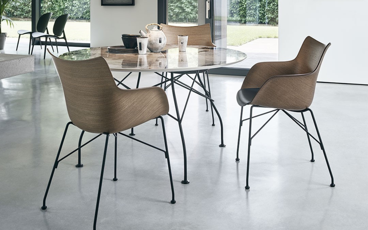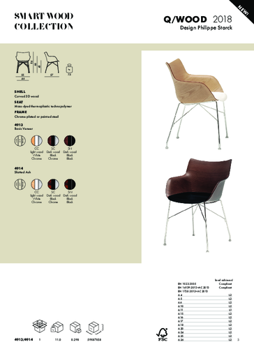 Židle Q/Wood vznikla pod hlavičkou designéra Phillipa Starcka a je ukázkou mistrně zpracovaného dřeva. S pomocí speciálního patentu je dřevo zprocesováno tak, že dojde k vytvoření svůdného zakřiveného tvaru židle. Vyniká dřevěným sedákem a podnoží z lakované oceli. Na výběr je ze dvou typů dřeva - jasanového a bukového. Rozměr židle je 55 x 57 x 84 cm (šířka x hloubka x výška).