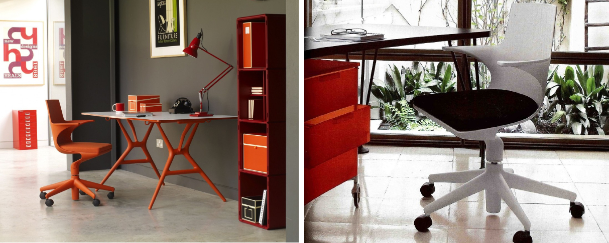Tato originální židle na kolečkách je nejenom elegantní, ale také funkční. Spoon vznikla díky sofistikované technologii vstřikování plastů a je velmi odolná. Díky tomu je vhodná i do exteriéru. Vybírat můžete z několika barevných provedení a rozměry jsou 57 x 72 x 83,5-92,5 cm (šířka x hloubka x výška). Výška sezení je nastavitelná a pohybuje se v rozmezí 45-54 cm.