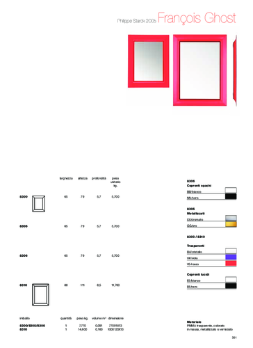 Zrcadlo, zrcadlo, řekni mi, kdo je na světě nejkrásnější... s odpovědí vám pomohou nástěnná obdélníková zrcadla Francois Ghost od designéra Phillipa Starcka. Jejich rámy jsou vyrobené z transparentního nebo barevného plastu s profilem připomínajícím tvar křídla racka. Propůjčily si krásu barev muránského skla a vytváří dechberoucí bohaté reflexy. Francois Ghost jsou nyní dostupné také v matných a metalických odstínech. Lze ho zavěsit vertikátně i horizontálně a pomůže opticky zvětšit prostor. Je vyrobeno ze 100% recyklovatelného ekologicky šetrného materiálu (certifikace UNI EN ISO 14001 a UNI EN ISO 9001), pyšní se pevností a odolností. Tak si zkrášlete ložnici, předsíň nebo třeba kavárnu.