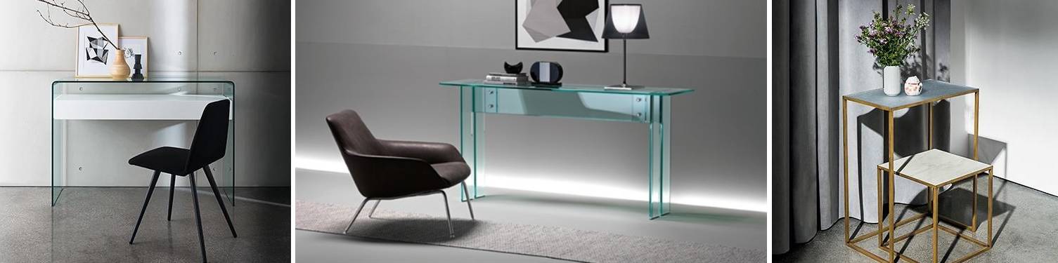 Estetické a praktické v jednom. Takové jsou konzolové a toaletní stolky z naší nabídky vyrobené předními evropskými výrobci, jako například SOVET, FIAM, SCHÖNBUCH nebo BONTEMPI. Konzolové stolky se v interiéru umisťují ke stěně. Neplní pouze estetickou funkci, ale mají i praktické využití. Může se s trochou nadsázky stát vaší mini galerií rodinných fotek, také ho můžete ozdobit vázou s oblíbenými květinami. Své uplatnění najde třeba v předsíni, v pracovně nebo na chodbě jako odkládací plocha. Designový toaletní stolek v ložnici naopak ocení zejména dámy, které o sebe rády pečují. Velmi se hodí zejména do ložnice a jsou doplněny úložnými šuplíky pro všechny dámské nezbytnosti. S výběrem vám rádi pomůžeme také přímo v našem showroomu v Praze!