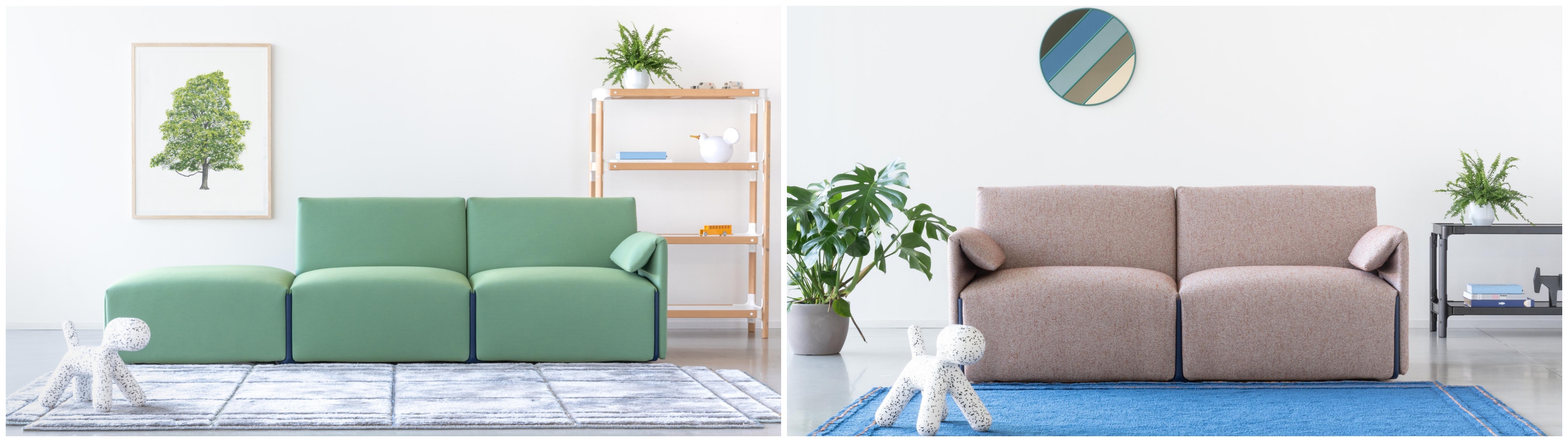 Sedací modul lze doplnit levou nebo pravou loketní opěrkou nebo otomanem. Jednotlivé díly se spojují pomocí plastových konektorů, které se zasouvají do drážek umístěných v rozích sedadla. Konektory si můžete vybrat v barvě shodné s pohovkou nebo vytvořit zajímavý estetický rys a zvolit barvy kontrastní. Prvky ze sestavit do mnoha kombinací v závislosti na vašich potřebách a prostoru.