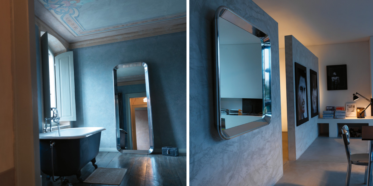 Zrcadlo Deja-vu je vyrobeno z lehčích a vzdušnějších materiálů, než je klasicky zvykem. Leštěný rám je z extrudovaného hliníku, v rozích zesílený litým hliníkem. Je dodáváno s pryskyřičnou lištou pro postavení na podlahu. K dispozici dvě velikosti. Tak dodejte svému interiéru lehkost a styl!