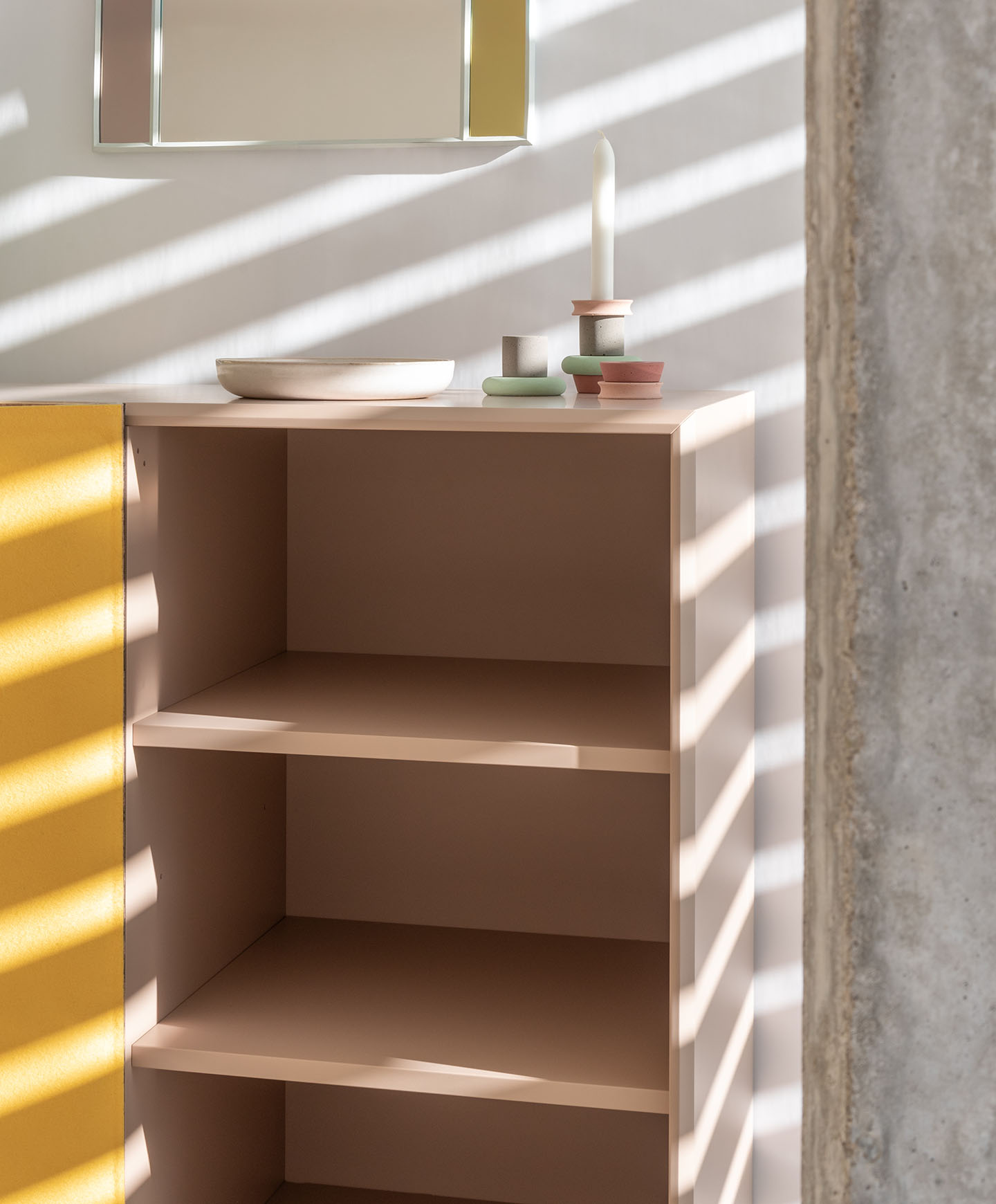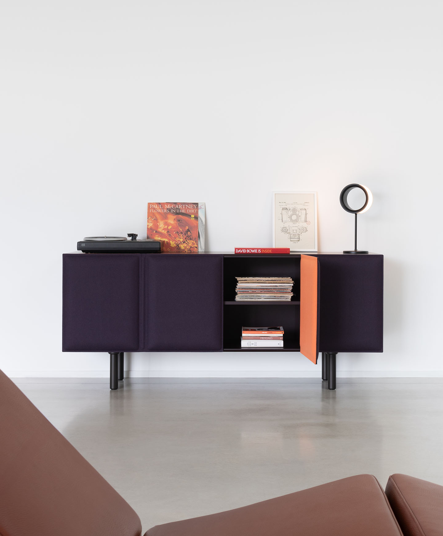TACITO je nejen elegantním úložným prostorem, ale díky svým plstěným dvířkům také pomáhá tlumit hluk a zlepšuje akustiku místnosti. Jeho nadčasové linie a pečlivě vybrané materiály dodávají interiéru sofistikovaný vzhled. K dispozici je v několika barevných variantách, které umožňují dokonalé sladění s vaším prostorem.