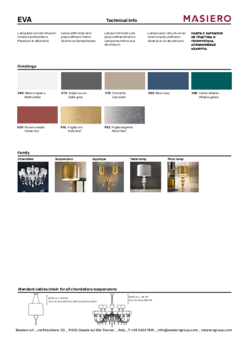 Již více než 40 let je rodinná italská značka Masiero synonymem pro dokonalou rovnováhu technického know-how a sofistikované estetiky v kategorii exkluzivního osvětlení. Portfolio jejích produktů zahrnuje klasické nadčasové kousky inspirované benátskými lustry, stejně jako nejmodernější výkřiky designu do vašeho interiéru i exteriéru. Výrobu si společnost drží striktně na domácí půdě, kde může čerpat z tradičních lokálních řemeslných znalostí a postupů, stejně jako prvotřídních kvalitních materiálů. Tyto hodnoty umožňují značce Masiero vytvářet pro své zákazníky jedinečná řešení na míru. Masiero charakterizuje výjimečná vášeň pro technologii a design, stejně jako precizní zpracování materiálů, zejména kovů a skla. Své luxusní výrobky Masiero vyváží do 80 zemí světa a nyní je máte možnost získat pro svůj domov nebo kancelář i vy!
