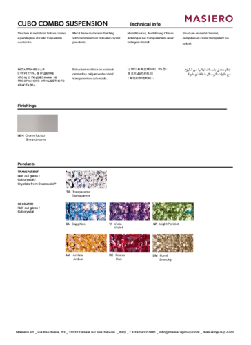 Již více než 40 let je rodinná italská značka Masiero synonymem pro dokonalou rovnováhu technického know-how a sofistikované estetiky v kategorii exkluzivního osvětlení. Portfolio jejích produktů zahrnuje klasické nadčasové kousky inspirované benátskými lustry, stejně jako nejmodernější výkřiky designu do vašeho interiéru i exteriéru. Výrobu si společnost drží striktně na domácí půdě, kde může čerpat z tradičních lokálních řemeslných znalostí a postupů, stejně jako prvotřídních kvalitních materiálů. Tyto hodnoty umožňují značce Masiero vytvářet pro své zákazníky jedinečná řešení na míru. Masiero charakterizuje výjimečná vášeň pro technologii a design, stejně jako precizní zpracování materiálů, zejména kovů a skla. Své luxusní výrobky Masiero vyváží do 80 zemí světa a nyní je máte možnost získat pro svůj domov nebo kancelář i vy!