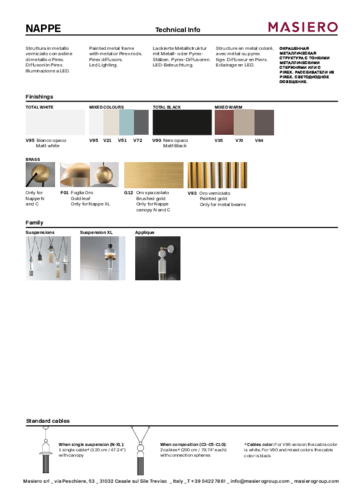 Již více než 40 let je rodinná italská značka Masiero synonymem pro dokonalou rovnováhu technického know-how a sofistikované estetiky v kategorii exkluzivního osvětlení. Portfolio jejích produktů zahrnuje klasické nadčasové kousky inspirované benátskými lustry, stejně jako nejmodernější výkřiky designu do vašeho interiéru i exteriéru. Výrobu si společnost drží striktně na domácí půdě, kde může čerpat z tradičních lokálních řemeslných znalostí a postupů, stejně jako prvotřídních kvalitních materiálů. Tyto hodnoty umožňují značce Masiero vytvářet pro své zákazníky jedinečná řešení na míru. Masiero charakterizuje výjimečná vášeň pro technologii a design, stejně jako precizní zpracování materiálů, zejména kovů a skla. Své luxusní výrobky Masiero vyváží do 80 zemí světa a nyní je máte možnost získat pro svůj domov nebo kancelář i vy!