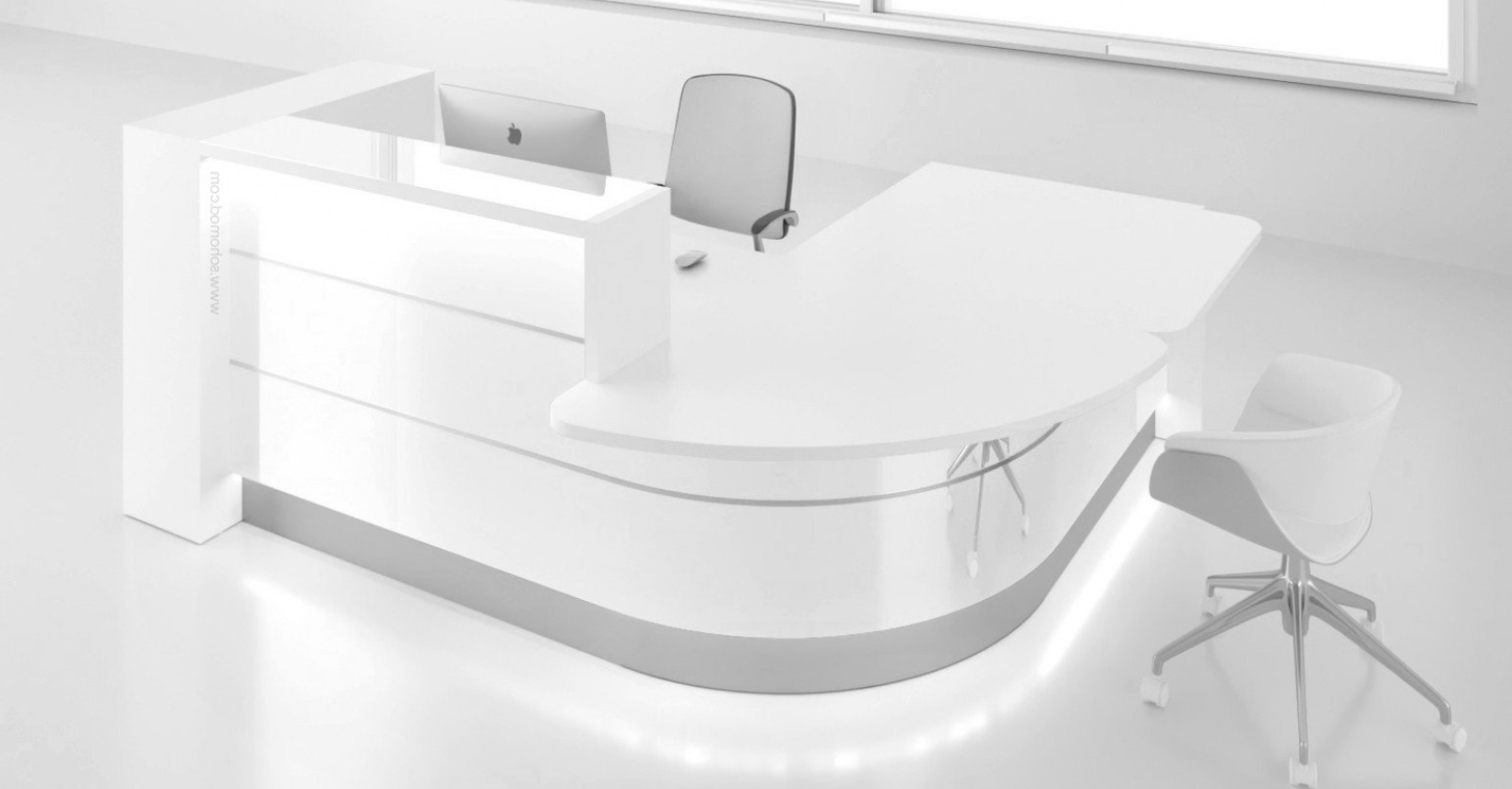 Tato nadčasová recepce s lesklými bílými prvky evokuje vzdušnost a čistotu prostoru. Doplňkové barvy pak můžete zvolit podle vaši firemní identity. Dynamiku celkovému designu dodávají hliníkové horizontální lišty. Recepční pulty z řady Valde se díky svému univerzálnímu charakteru hodí do různých typů interiérů, kterým okamžitě vdechnou nový život!