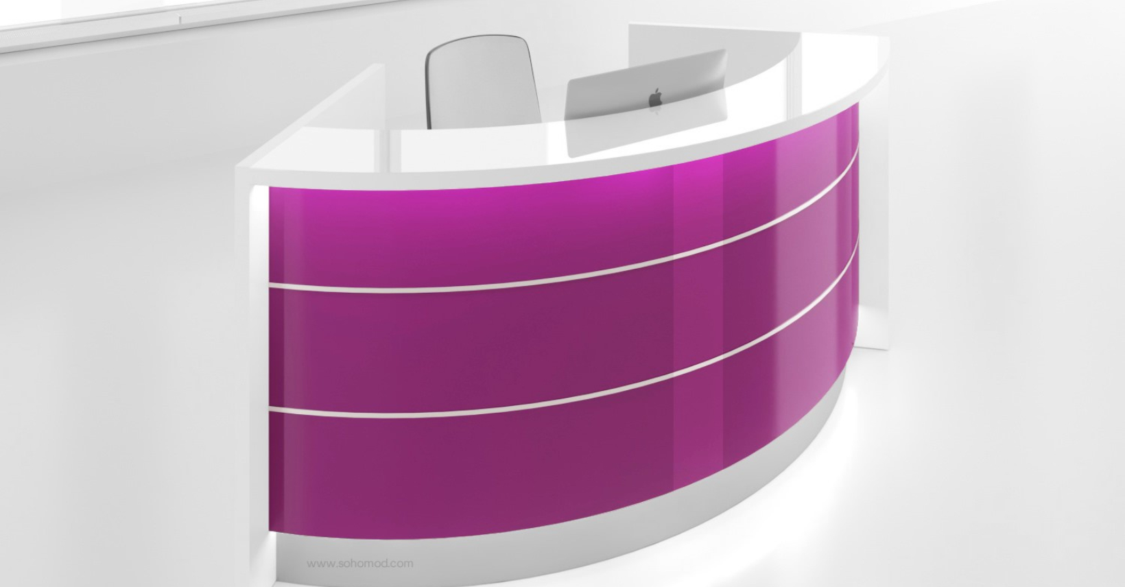 Tato nadčasová recepce s lesklými bílými prvky evokuje vzdušnost a čistotu prostoru. Doplňkové barvy pak můžete zvolit podle vaši firemní identity. Dynamiku celkovému designu dodávají hliníkové horizontální lišty. Recepční pulty z řady Valde se díky svému univerzálnímu charakteru hodí do různých typů interiérů, kterým okamžitě vdechnou nový život!