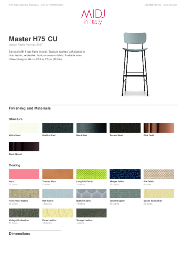 Kolekci MASTER navrhl sám prezident značky MIDJ, italský designér Paolo Vernier. Z řady je patrná inspirace školními léty, kteroužto jako svoji vizi však Paolo dovedl k dokonalosti. V kolekci nefigurují žádné zbytečnosti, jen mistrně zpracované detaily, jednoduché a elegantní linie. Sedák a opěradlo jsou v dřevěném či čalouněném provedení na jednoduché kovové konstrukci. Kolekce jídelních a barových židlí je doplněna i dvěma typy stolů. Svojí jednoduchostí kolekce vynikne zejména ve větších industriálních prostorech, nebo naopak zútulní kavárny a menší jídelny.