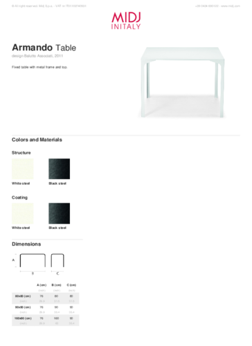 Estetické, elegantní a čisté. Tak by se dala definovat kolekce ARMANDO navržená studiem Balutto Associati pro italskou značku MIDJ. Díky své jednoduché struktuře jsou stoly vhodné do nejrůznějších prostředí. Praktické jsou zcela rovné hrany, díky kterým jdou stoly pohodlně štosovat k sobě a lehce tak vytvořit větší pracovní prostor. Kromě klasického jídelního stolu nabízí kolekce i možnost vysokých nohou a stůl je pak možné doplnit barovými stoličkami.