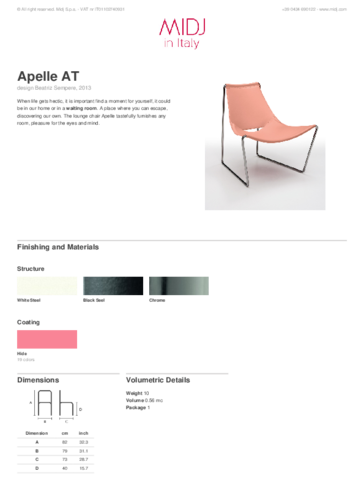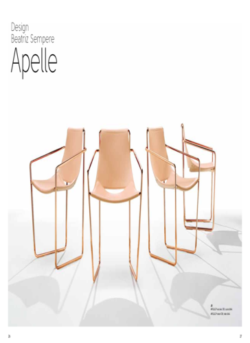 Kolekce APELLE od španělské návrhářky Beatriz Sempere je charakteristická svými měkkými zaoblenými tvary. Celá řada kombinuje kvalitní ocelový rám a pravou kůži. Tyto špičkové materiály zaručující nezbytnou flexibilitu a splňují velmi vysoké nároky pro výrobu. Návrhářka šlo o to propojit klasickou s moderní estetikou, o čemž je celá řada. Na první pohled zaujmou zejména stolky potažené kůží. Inteligentní design produktu je kombinován s funkčností a komfortem. Řada je ideální řešení pro moderní kanceláře nebo restaurace, kde dodá punc stylu a hravosti a každého na první pohled zaujme.