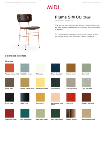 Italská značka MIDJ spojila své síly s designérem Paolo Vernierem a vytvořila kolekci PIUMA plnou minimalistických tvarů a kvalitních materiálů. Dřevěné, textilní nebo dřevěné sedáky jsou doplněny kovovou podnoží a hodí se jak do domácího prostředí, tak do trendy restaurace nebo kavárny. V kolekci najdete jídelní židle i barovky v nekonečném množství barevných kombinací.