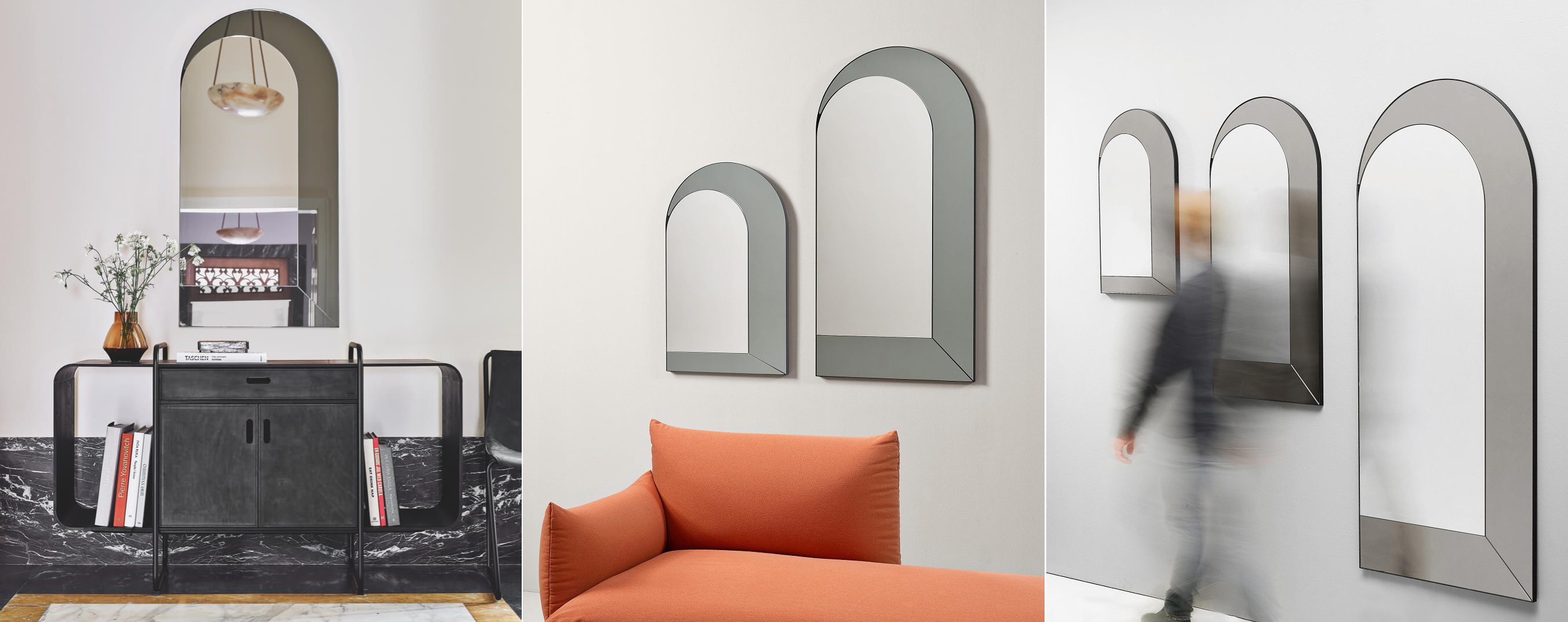 Designové zrcadlo PEEK pochází z dílny designéra Nicola Bonriposi. Zastává také roli moderního doplňku, který doladí každý libovolný interiér, ať už bytový, nebo komerční. Tvar oblouku a kouřová barva na bočních pásech vytvářejí iluzi větší hloubky. Zrcadla jsou k dispozici ve 3 různých velikostech a lze z nich vytvářet zajímavé celky podle vaší momentální fantazie, které se meze rozhodně nekladou!