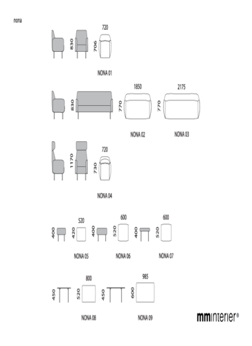 Subtilní, ale velmi stabilní pohovka NONA ve dvou dostupných velikostech vyniká oblými tvary, vizuální lehkostí i jemnou estetikou. Český designér René Šulc při navrhování kladl kromě designu akcentoval ergonomii a pohodlí. Dřevěná kostra je polstrována řezanou polyuretanovou pěnou té nejvyšší kvality a čalouněna látkou z široké palety barev a struktur s důrazem na provedení švů. Potah není snímatelný. Štíhlé nožky jsou vyrobeny z odolné oceli. Díky minimalistickému a nadčasovému provedení celá kolekce zapadne do interiéru všech stylů i typů. NONA byla ověnčena oceněním Nábytek roku 2018.