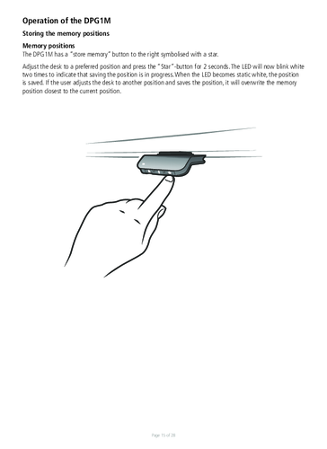 Výšku stolu ovládáte pomocí tlačítek, která jsou k dispozici v pěti provedeních. Stůl má dva motory a stolová deska, která unese až 80 kilogramů, se pohybuje rychlostí 38 mm/s.