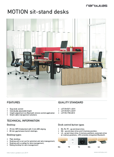 Stůl MOTION je k dispozici v několika různých rozměrech a provedeních, takže se snadno přizpůsobí vašim kancelářím a pracovnám.